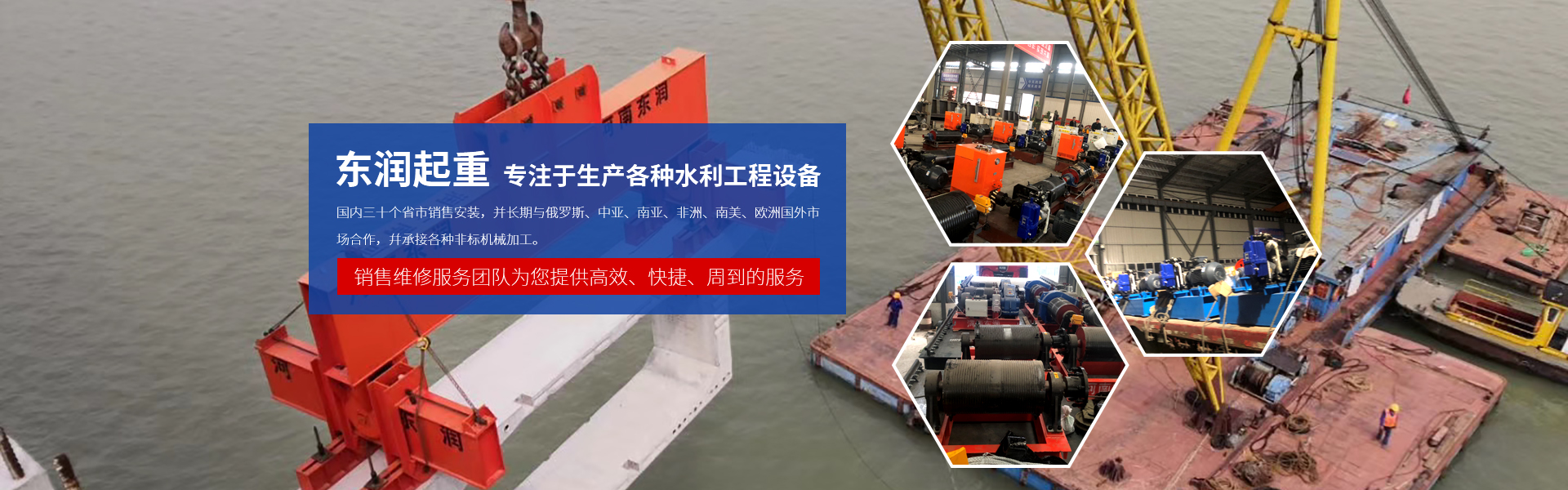 河南東潤(rùn)起重設(shè)備有限公司始建于1992年,公司位于河南省起重工業(yè)園區(qū),交通便利,環(huán)境優(yōu)美,借得天獨(dú)厚的地理位置,和過硬的產(chǎn)品質(zhì)量,迅速成長(zhǎng)壯大,具實(shí)力的水利工程、起重配件生產(chǎn)安裝于一體的生產(chǎn)廠商。  東潤(rùn)起重以中國(guó)水利工程為依托,專注于生產(chǎn)各種水利工程設(shè)備,公司卷?yè)P(yáng)機(jī)、啟閉機(jī)等水工設(shè)備遠(yuǎn)銷海內(nèi)外,國(guó)內(nèi)三十個(gè)省市銷售安裝,并長(zhǎng)期與俄羅斯、中亞、南亞、非洲、南美、歐洲國(guó)外市場(chǎng)合作,幷承接各種非標(biāo)機(jī)......... 查看更多>>